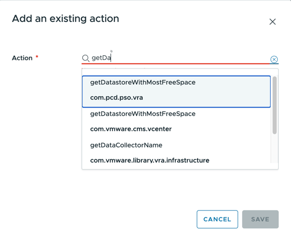 If you have never configured actions in Aria Orchestrator, check this link for guidance.